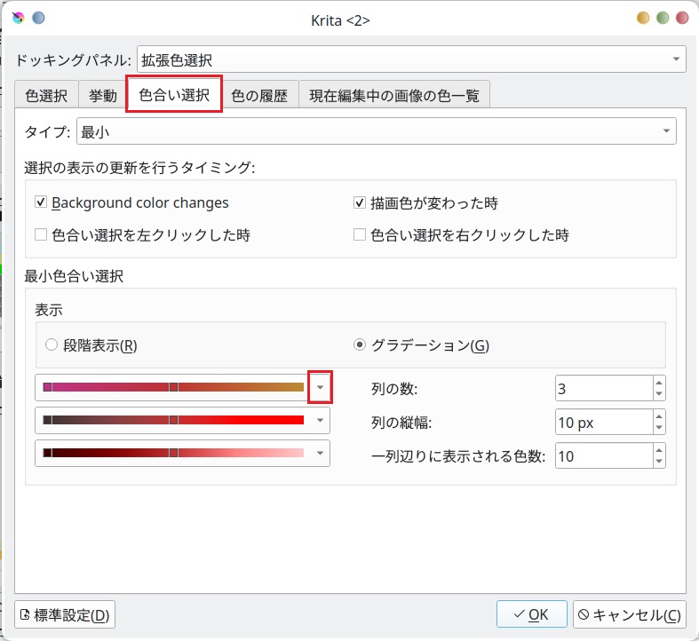 SAIのスライダーは単純に HSVを上げ下げするだけのものでニャーは長い事それに慣れていたので、その設定にするにや。