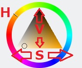 2番目の S=1 V=1はスライドすると彩度と明度が同時に上がり下がりすると言う事にゃ。